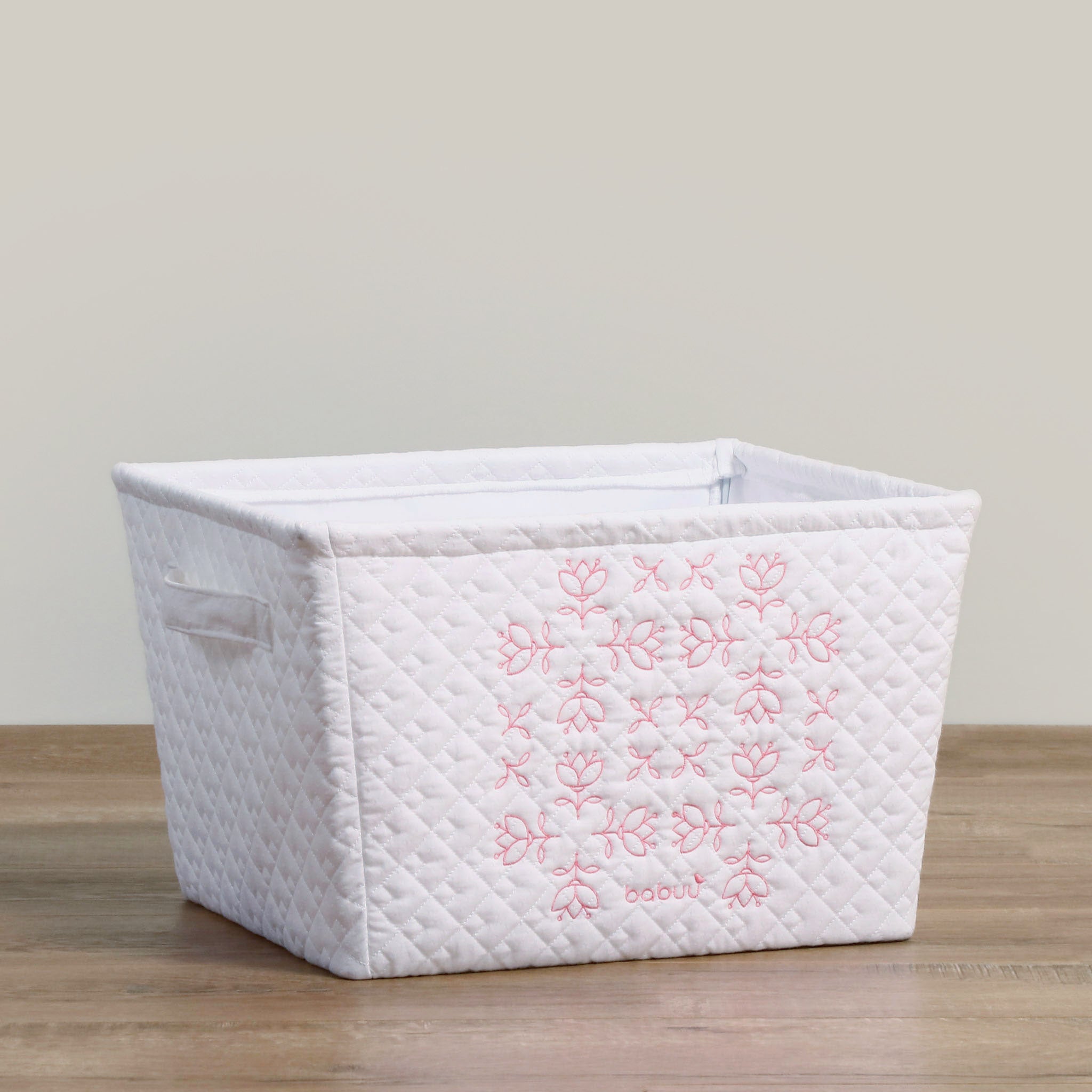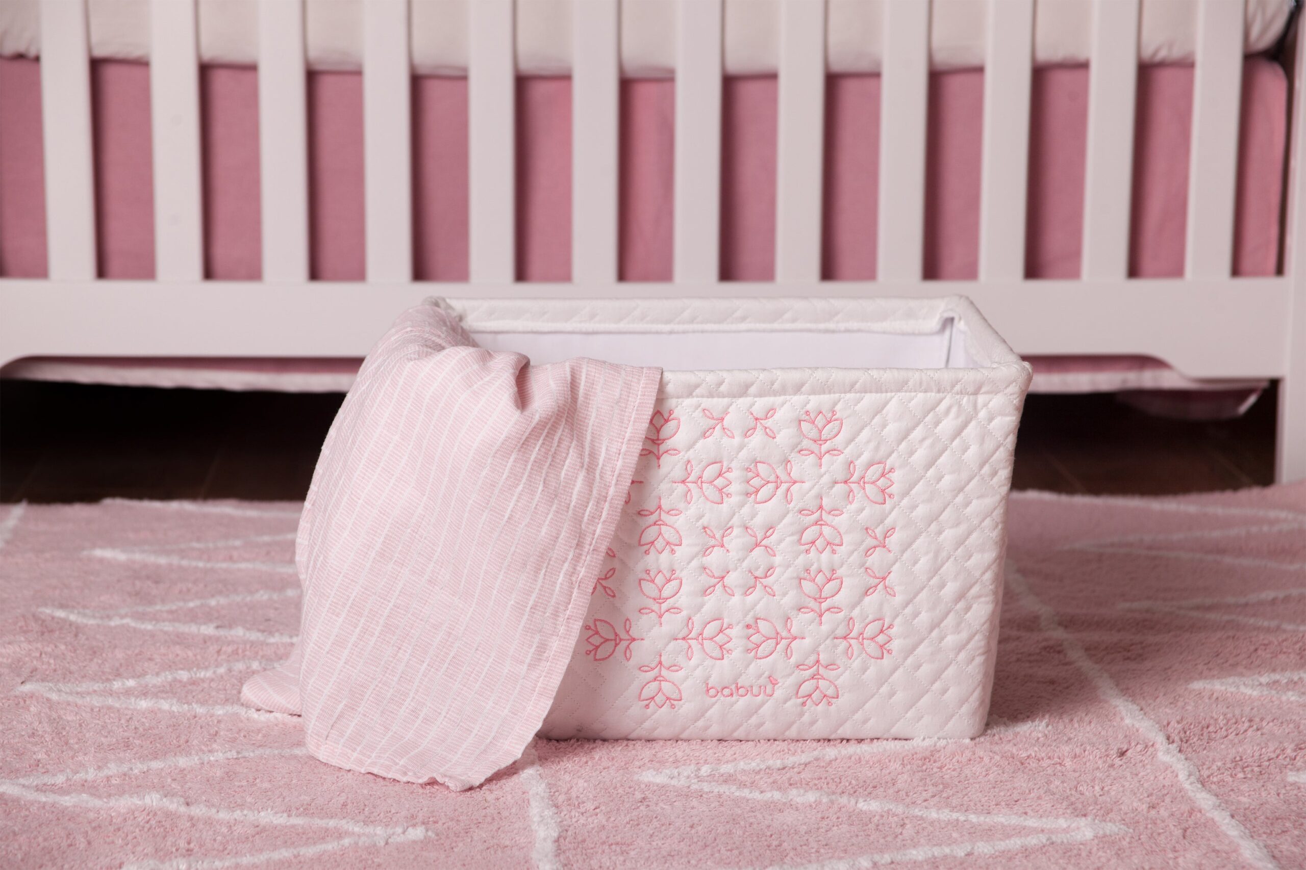 Organiza y almacena juguetes, cobijas, peluches, o accesorios con los cestos multisusos Babuu Baby. Son el accesorio ideal para colocarlo en cualquier lugar por su práctico tamaño, se pueden colocar en entrepaños de cómodas o libreros,  su diseño de sutiles de tulipanes bordadas en tiernos tonos de rosa , le da un toque decorativo al cuarto de tu bebé para que siempre luzca hermoso.