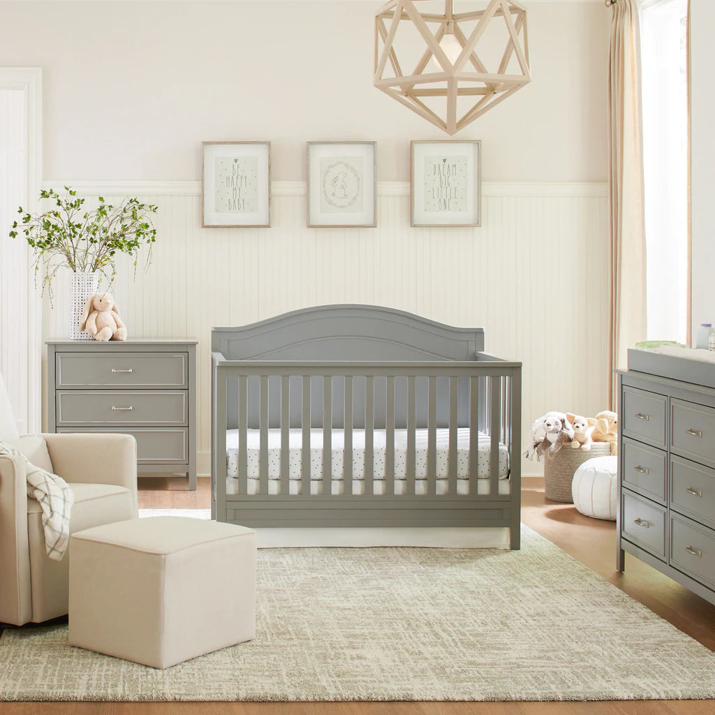 Cuida el sueño de tu bebé con la cuna Babuu Baby Charlie blanca 4 en 1 de Da Vinci Furniture, presenta una elegante cabecera arqueada con molduras delicadamente talladas y pies delgados, cuidando cada detalle para que el cuarto de tu bebé luzca hermoso. La cuna se convierte fácilmente de cuna a cama para niños pequeños, sofá cama y cama matrimonial (comprando los largueros aparte).