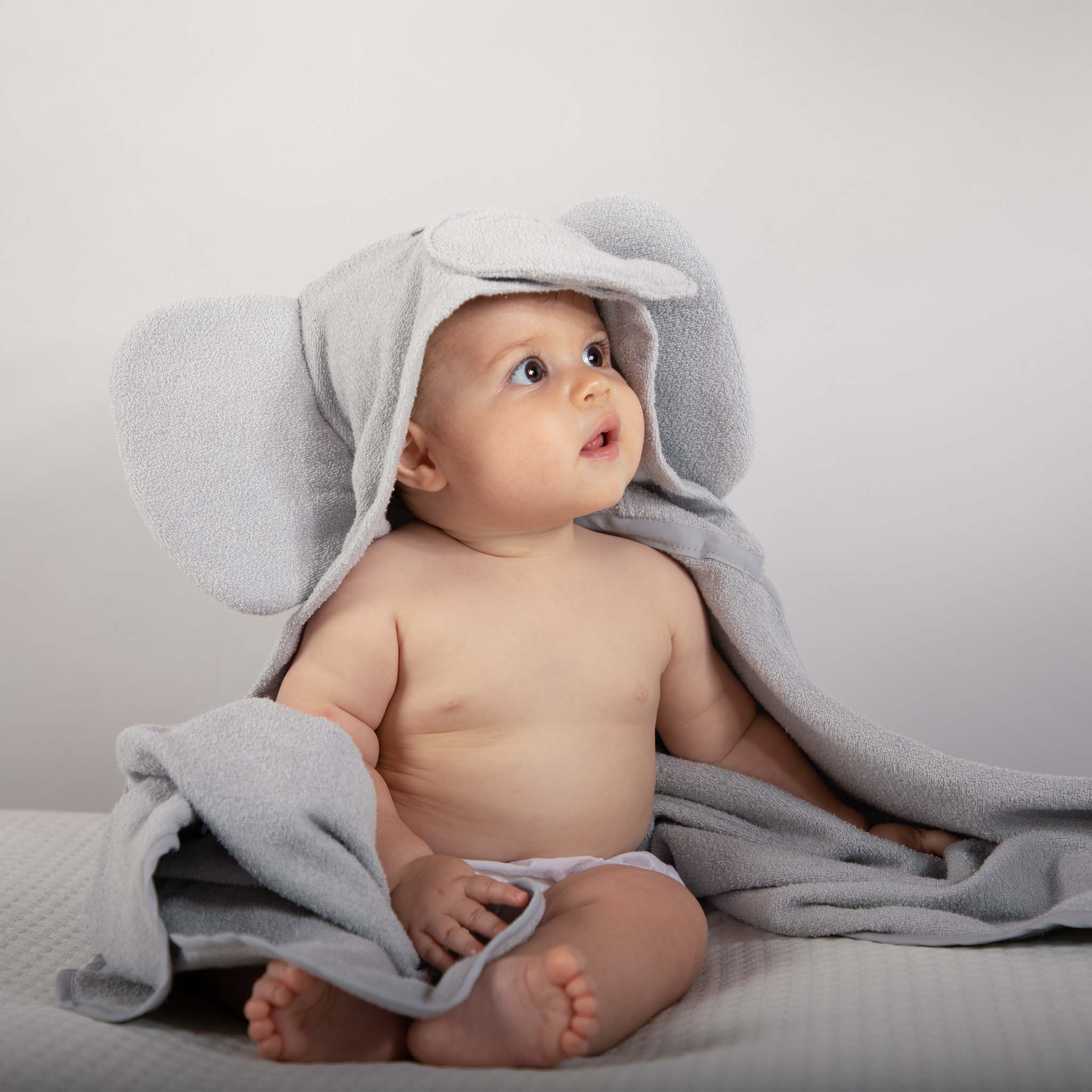 Dale un toque divertido a cada una de las duchas de tu bebé con nuestra toalla de baño para bebé, suave y de larga duración,100% algodón, con diseño de elefante gris con divertidas orejas, trompa tridimensional y cola de cordones gris. La capucha protege los oídos del bebé o niño del aire, al sacarlos del agua.
